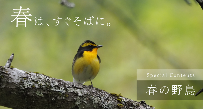 今回は、春の風景に目を向けた特集「春は、すぐそばに〜春の草花〜」「春は、すぐそばに〜春の野鳥〜」などを紹介しています。