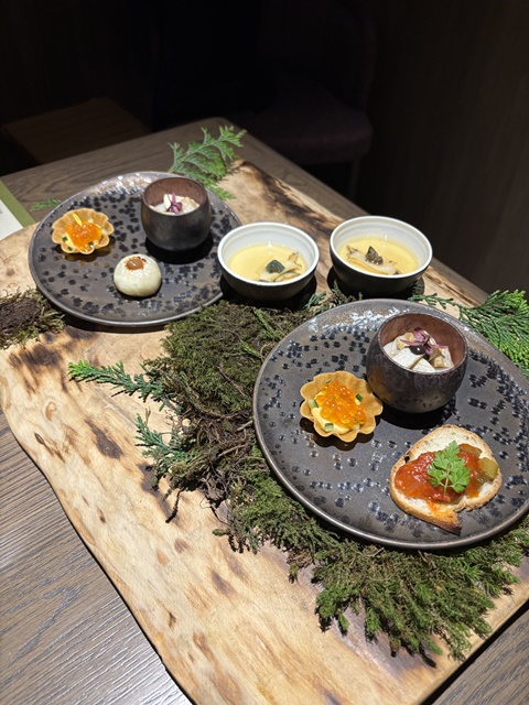 森をイメージしたアミューズからスタート。(写真は2名分です)
