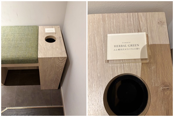 一歩お部屋に入ると、ふふ 軽井沢 オリジナル「HERBAL GREEN」の香りで出迎えてくれます。